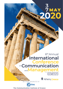 You are invited to submit your proposal (abstract/ poster/ round table /workshop/) to be considered for presentation at ICCM2020, that will take place 3-7 May 2020, in Athens, Greece, organized by the Communication Institute of Greece and endorsed by the King Graduate School at Monroe College, in USA and the Media Informatics Lab, School of Journalism and Mass Communication, Aristotle University of Thessaloniki, in Greece.